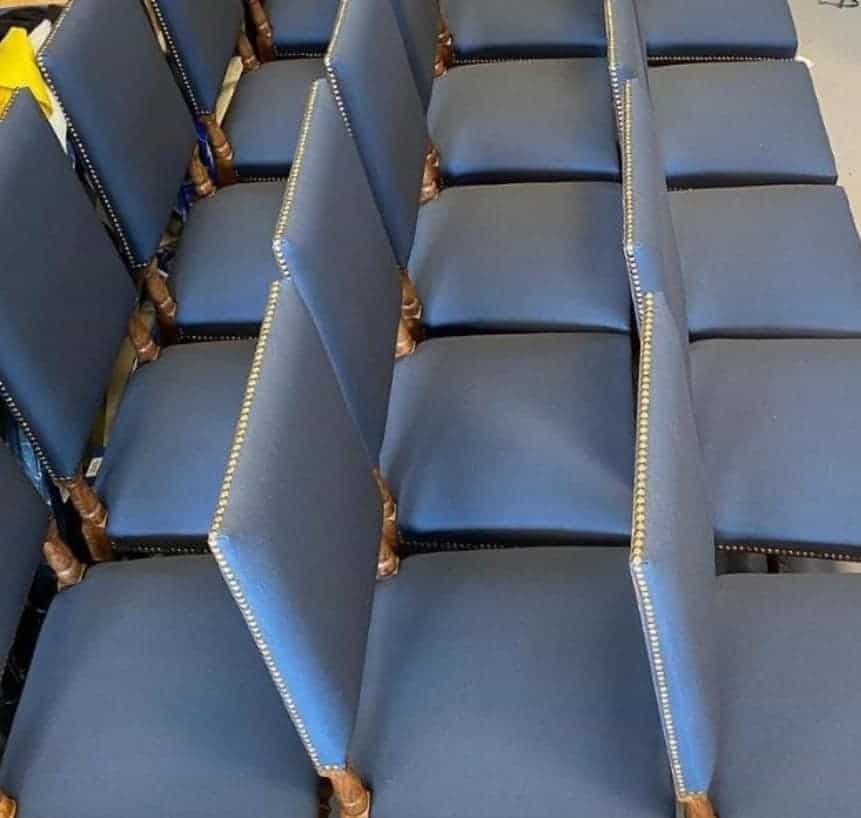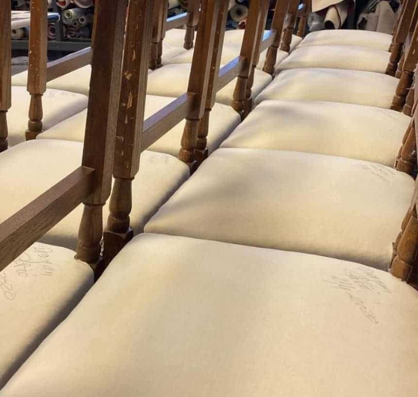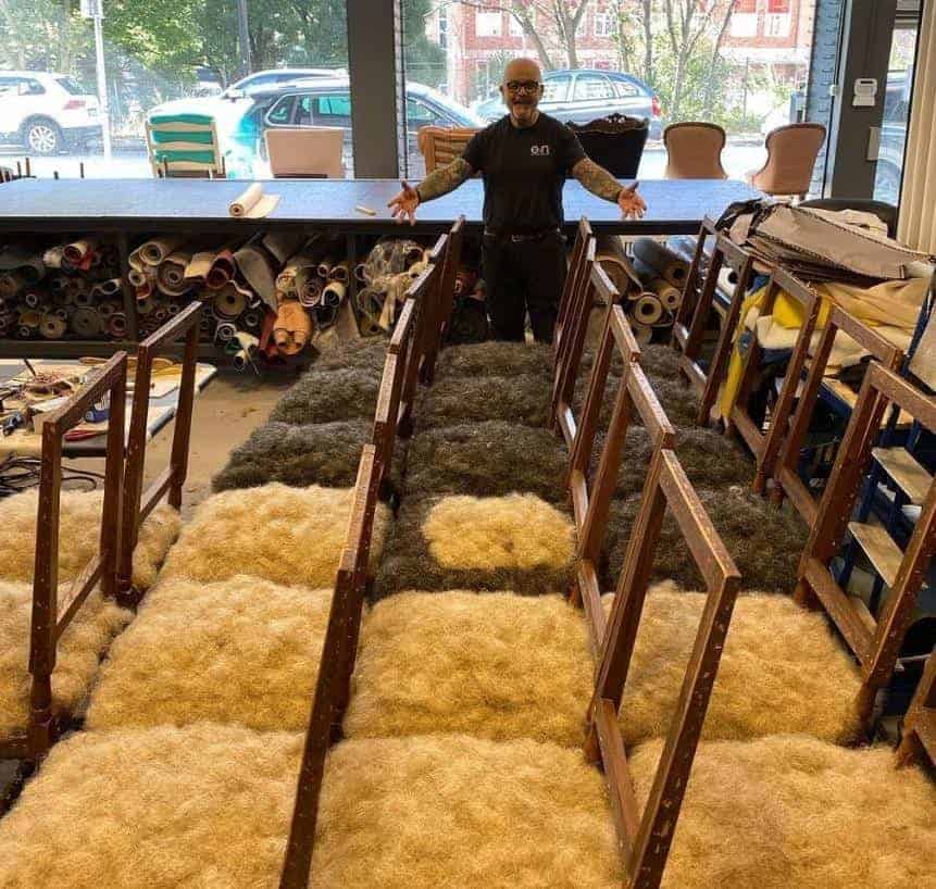 verkstad, där fyra skickliga tapetserare